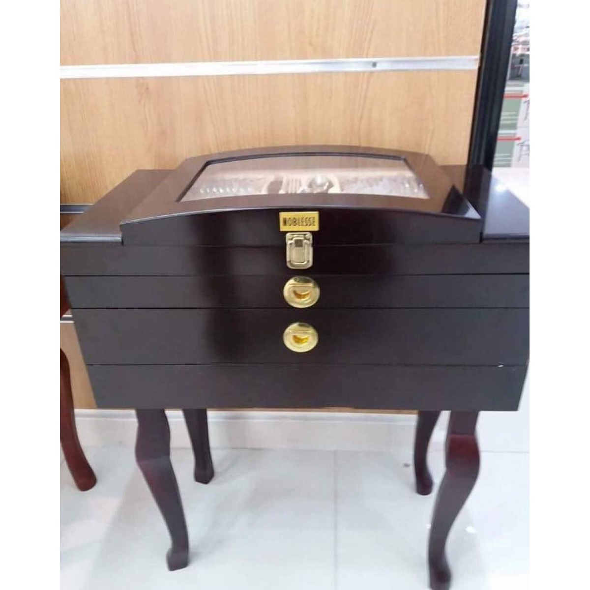 Ménagers luxeuse comprenant toute pieces necessaires dans votre cuisine en plus elle est presentable avec son support en bois pour ajoutez une touche de valeurs a son contenu !